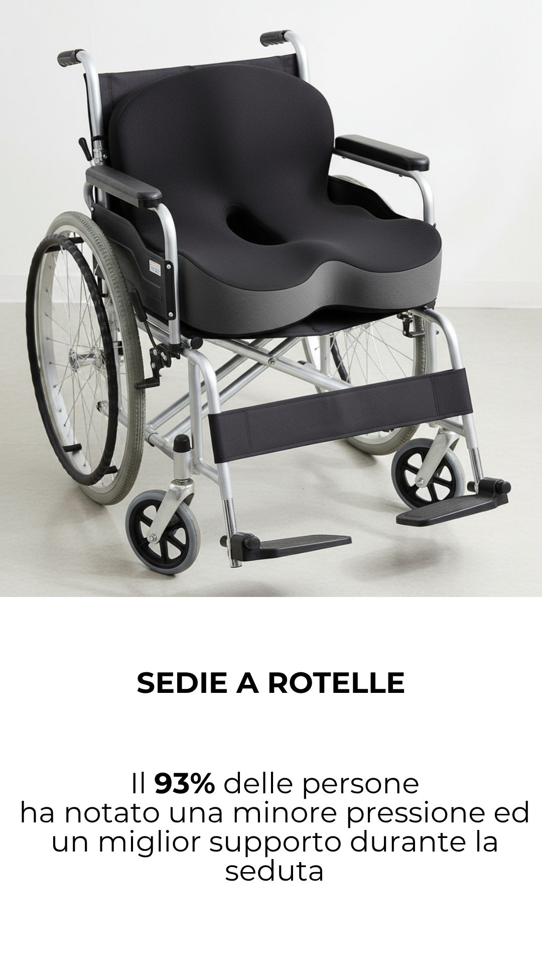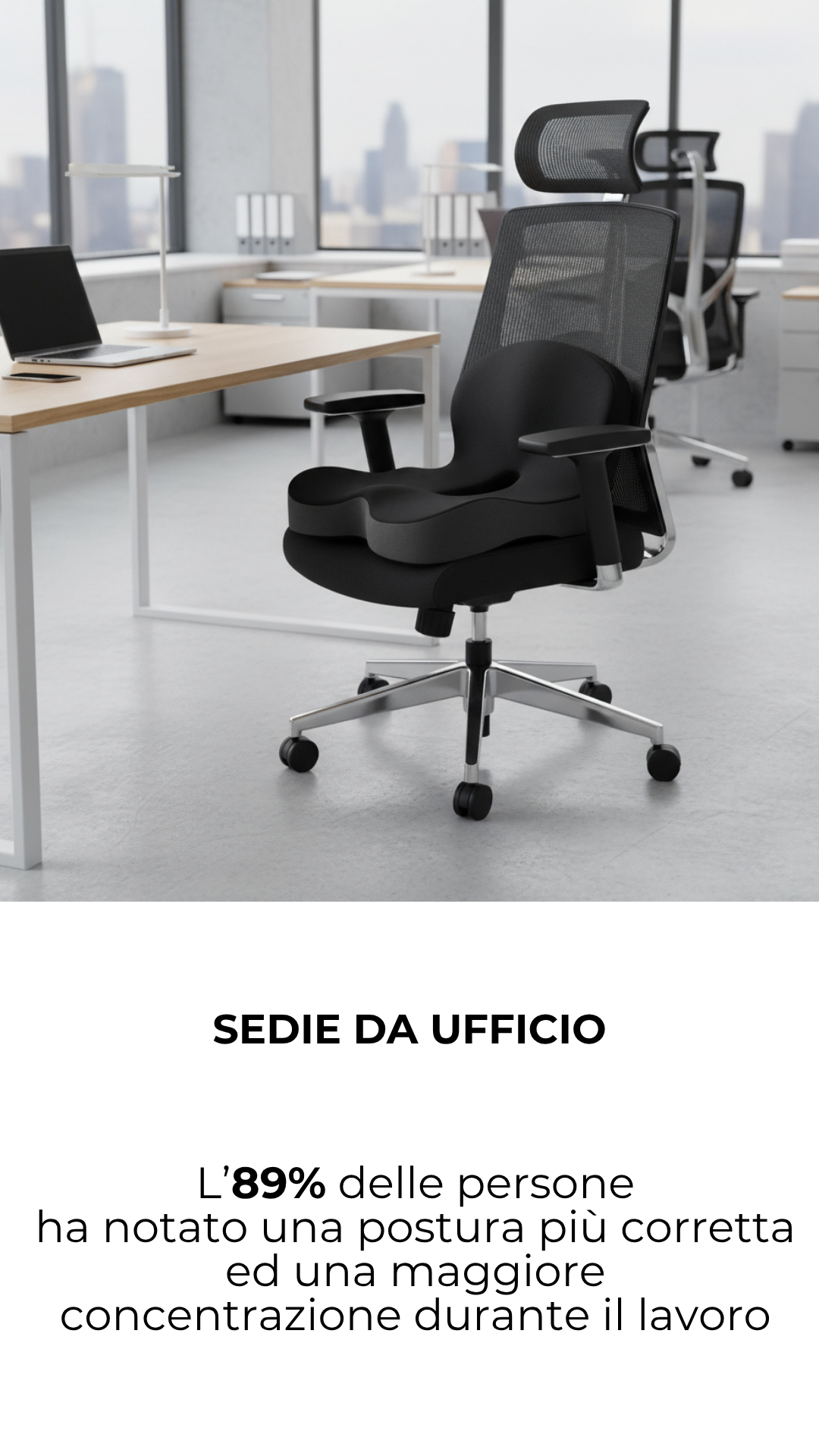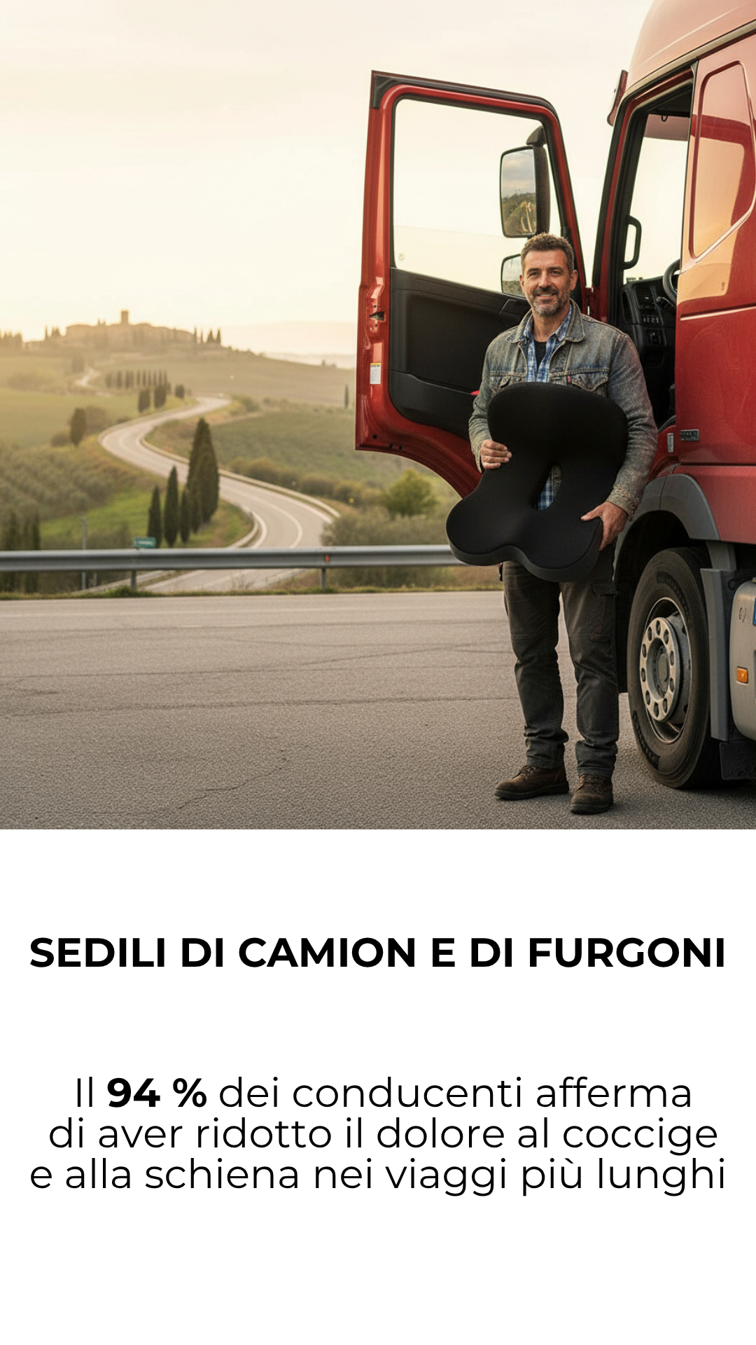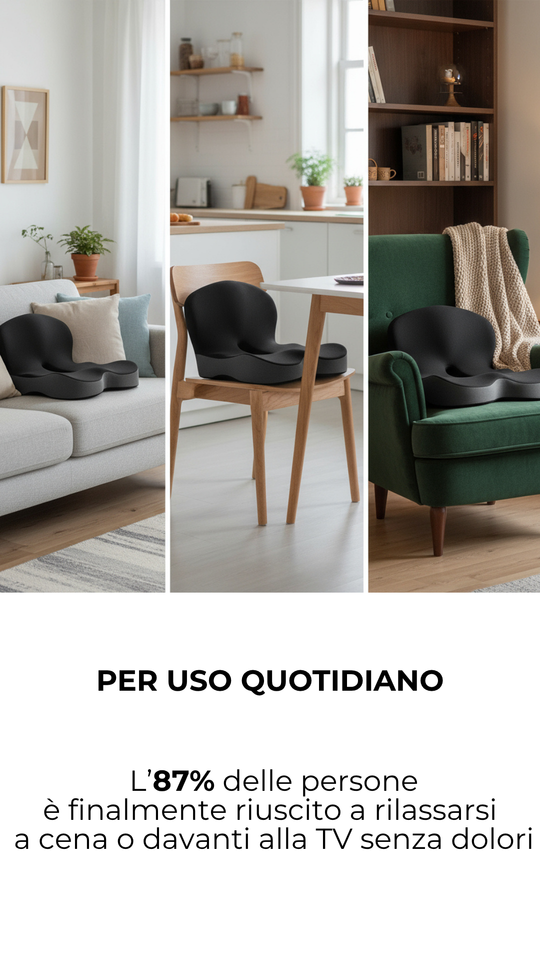 La maggior parte delle sedute affatica il corpo in meno di 30 minuti: i fianchi si spostano, la postura cede e la pressione si concentra su coccige e zona lombare lasciandoti rigido, dolorante o intorpidito.